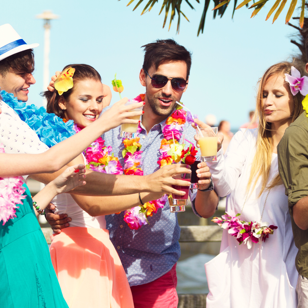 Not every holiday party needs snow. A tropical theme brings summer fun into wintertime, with bright florals, palm leaves, and beachy decor. Dreams In Detail highlights tropical holiday party themes as one of the trendiest choices for groups looking for something festive—but not overly traditional (source: Dreams in Detail).