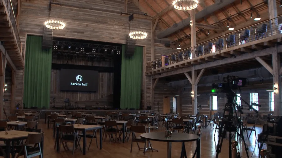 Located just north of downtown in Madison, Harken Hall is a thoughtfully designed venue that combines history, intention, and modern production capabilities. Built with reclaimed wood from historic barns and sawmills, the space feels warm and grounded while still supporting high‑level corporate needs.