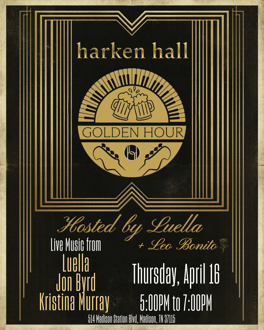 Join us every Thursday from 5pm–7pm (unless there’s a scheduled show) in the Harken Hall lobby for an early evening hang that feels as good as it sounds. Hosted by Luella, Golden Hour regularly features live performances from her along with a rotating lineup of talented guest artists.