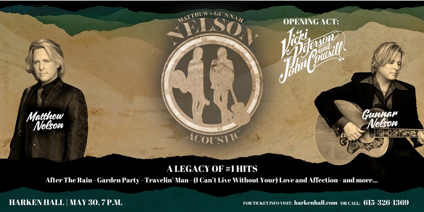 Multiplatinum recording artists Matthew and Gunnar Nelson take the stage at Harken Hall on May 30 at 7:00 p.m. for a special acoustic performance that puts the focus exactly where it belongs, on the songs.