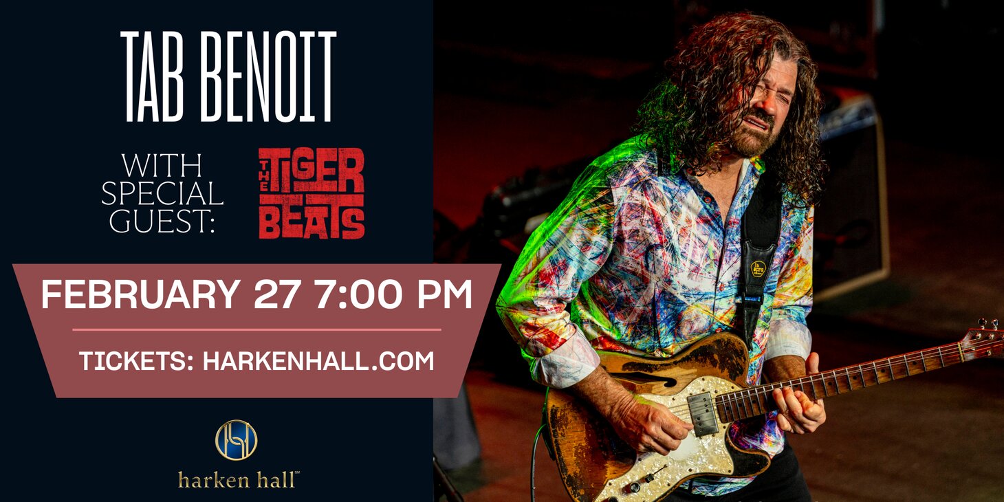 Joining Tab Benoit for the evening are The Tiger Beats, a Nashville-based collective of musicians united by a deep respect for the great era of blues and early R&B. Founded by singer and guitarist Patrick Sweany and fully realized with the addition of drummer Jason Smay, bassist Ted Pecchio, and guitarist/singer McKinley James, the band has become a singular force on the Music City landscape.